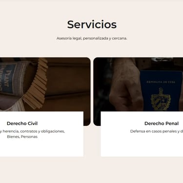 Diseñé una landing page moderna y sobria para un estudio jurídico liderado por dos abogadas jóvenes. El objetivo fue reflejar profesionalismo y credibilidad, aun con poca trayectoria, mediante un diseño claro, tipografía elegante y un mensaje directo que inspira confianza y cercanía.